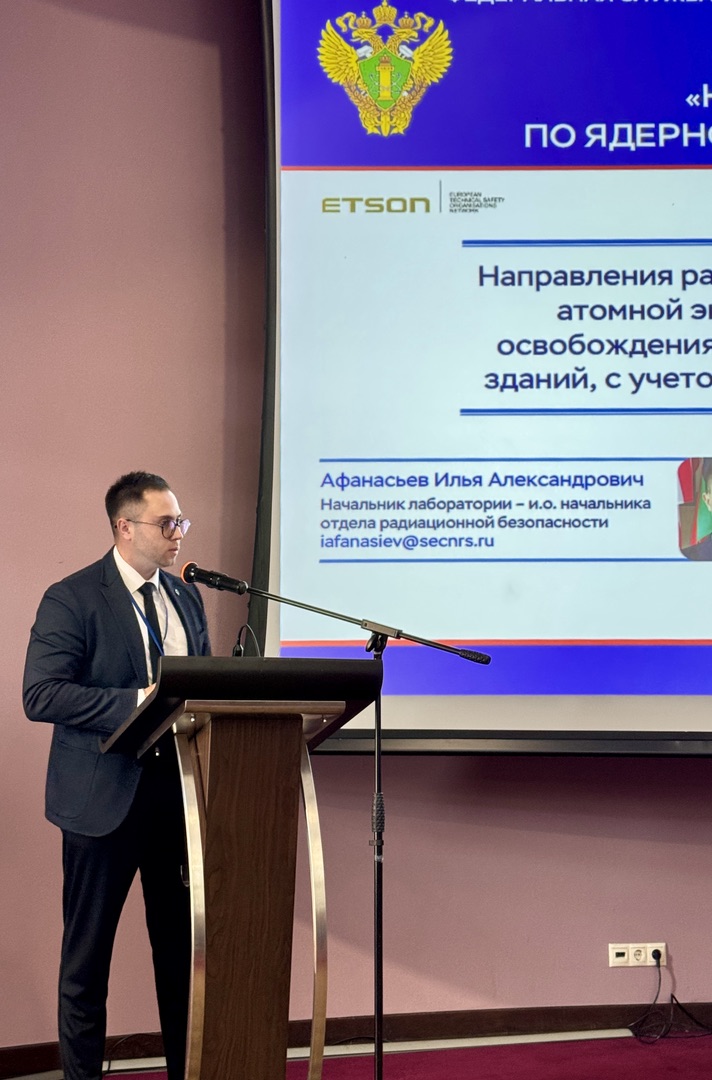 Начальник лаборатории отдела радиационной безопасности (ОРБ) (и. о. начальника ОРБ) Илья Афанасьев и научный сотрудник отдела аварийной готовности и радиационной защиты (ОАГРЗ) Никита Шкляев выступили на совместном Пленарном заседании семинаров и представили доклады, посвященные подходам к регулированию деятельности по обращению с очень низкоактивными отходами (ОНАО) и инструментарию для расчета нормативов выбросов и сбросов радиоактивных веществ в окружающую среду.