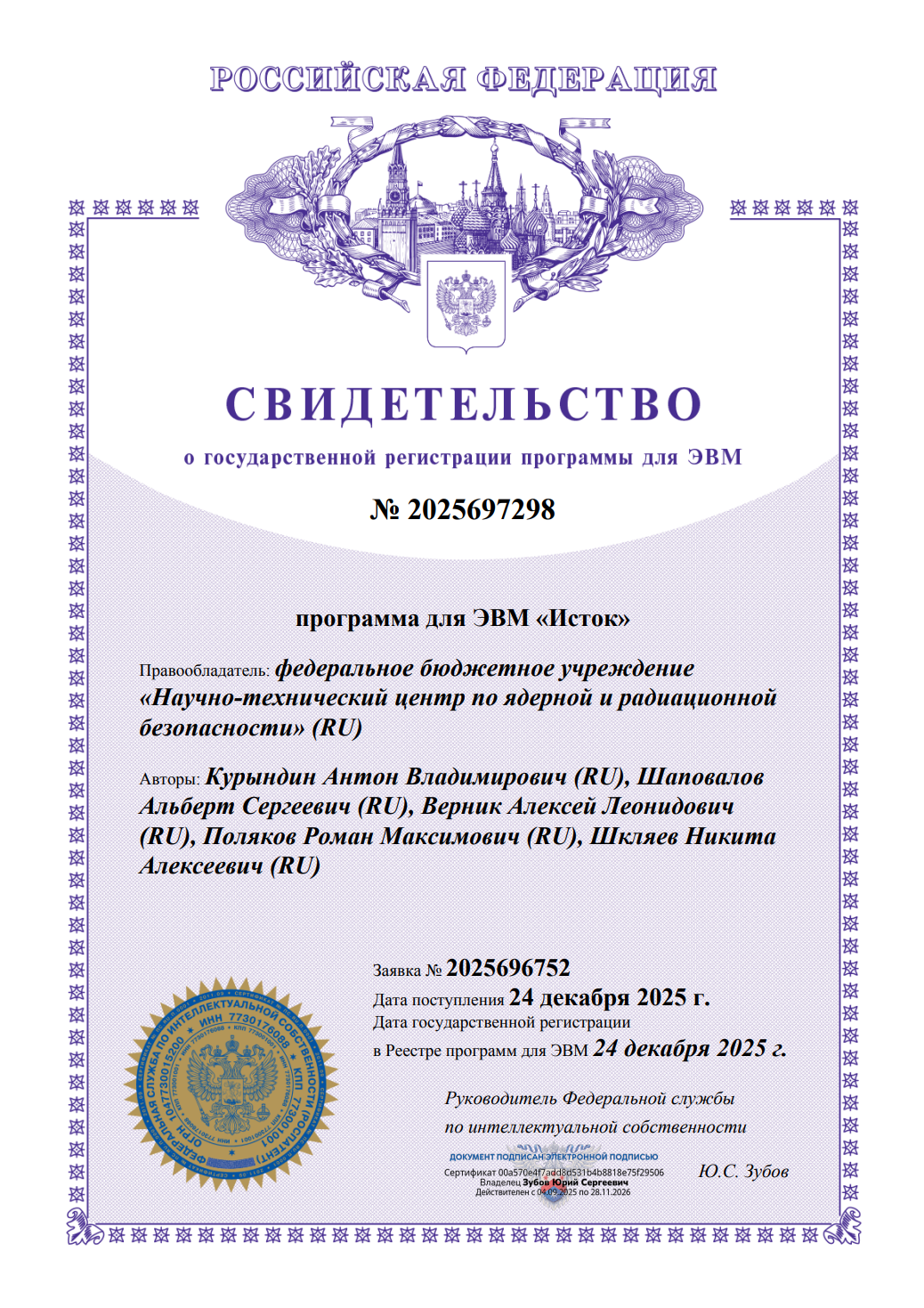 Регистрационный № 2025697298 от 24.12.2025